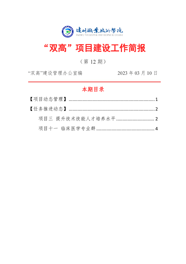 “双高”项目建设工作简报 (第十二期)