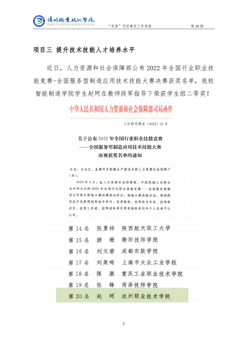 “双高”项目建设工作简报 (第十五期)