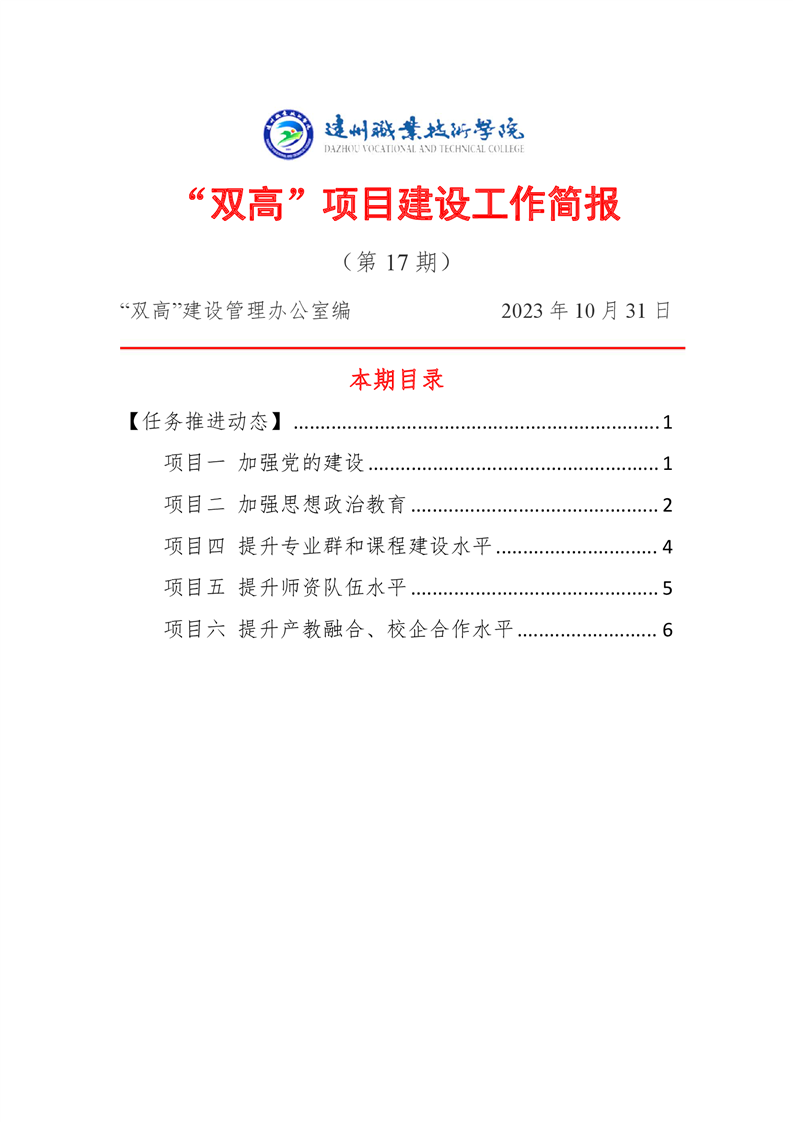 “双高”项目建设工作简报 (第十七期)