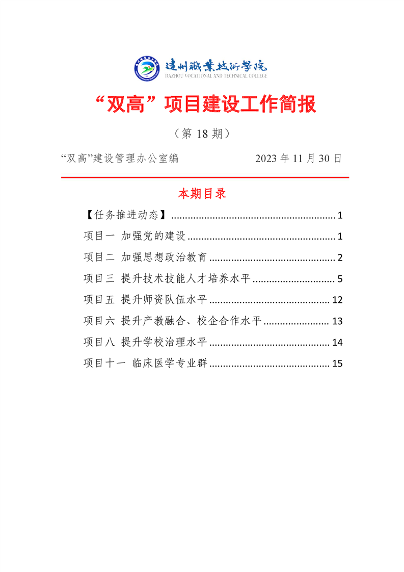 “双高”项目建设工作简报 (第十八期)