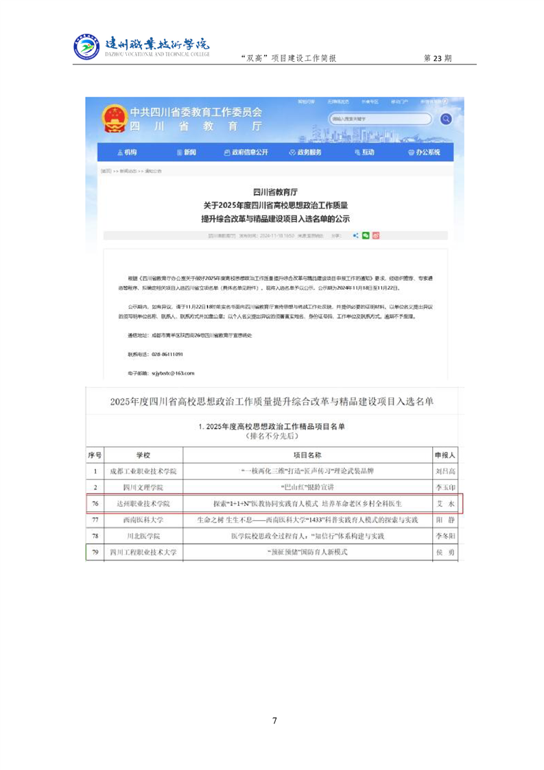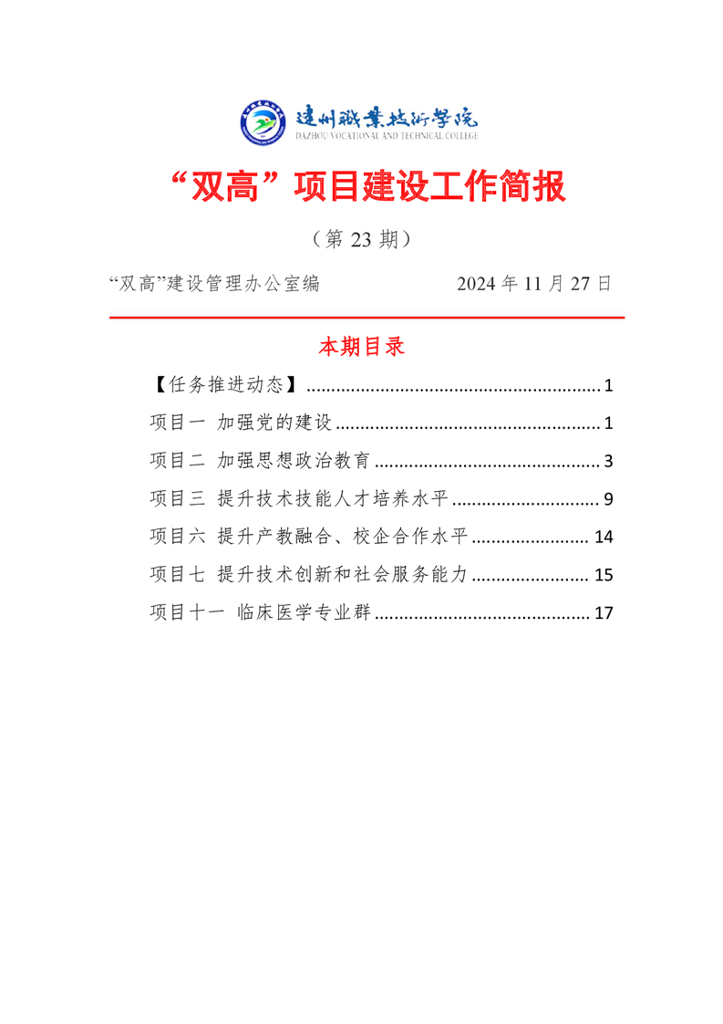 “双高”项目建设工作简报 (第二十三期)